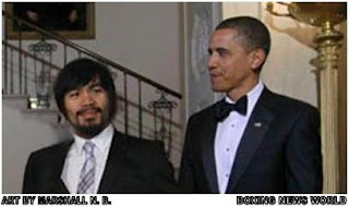 According to an Associated Press story, datelined Washington and bylined by Joseph White on the day of his visit, Pacquiao and his wife Jinkee reportedly talked boxing and basketball with Obama.